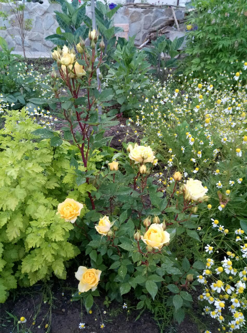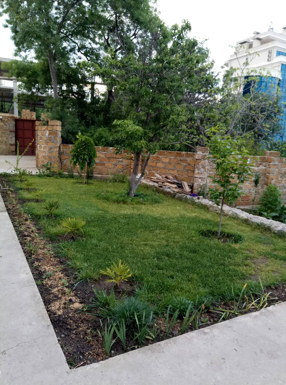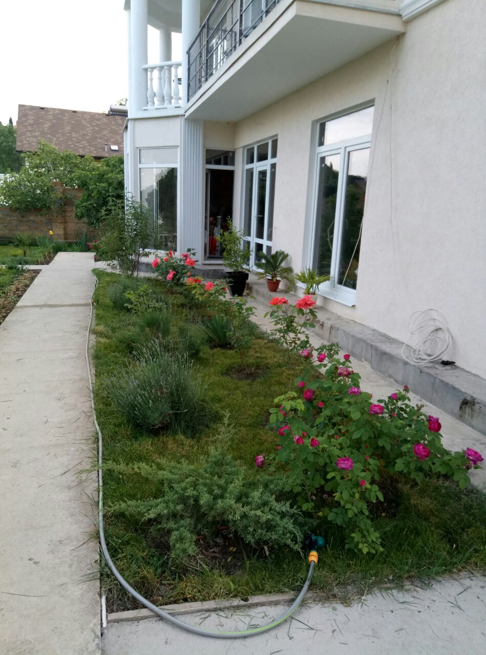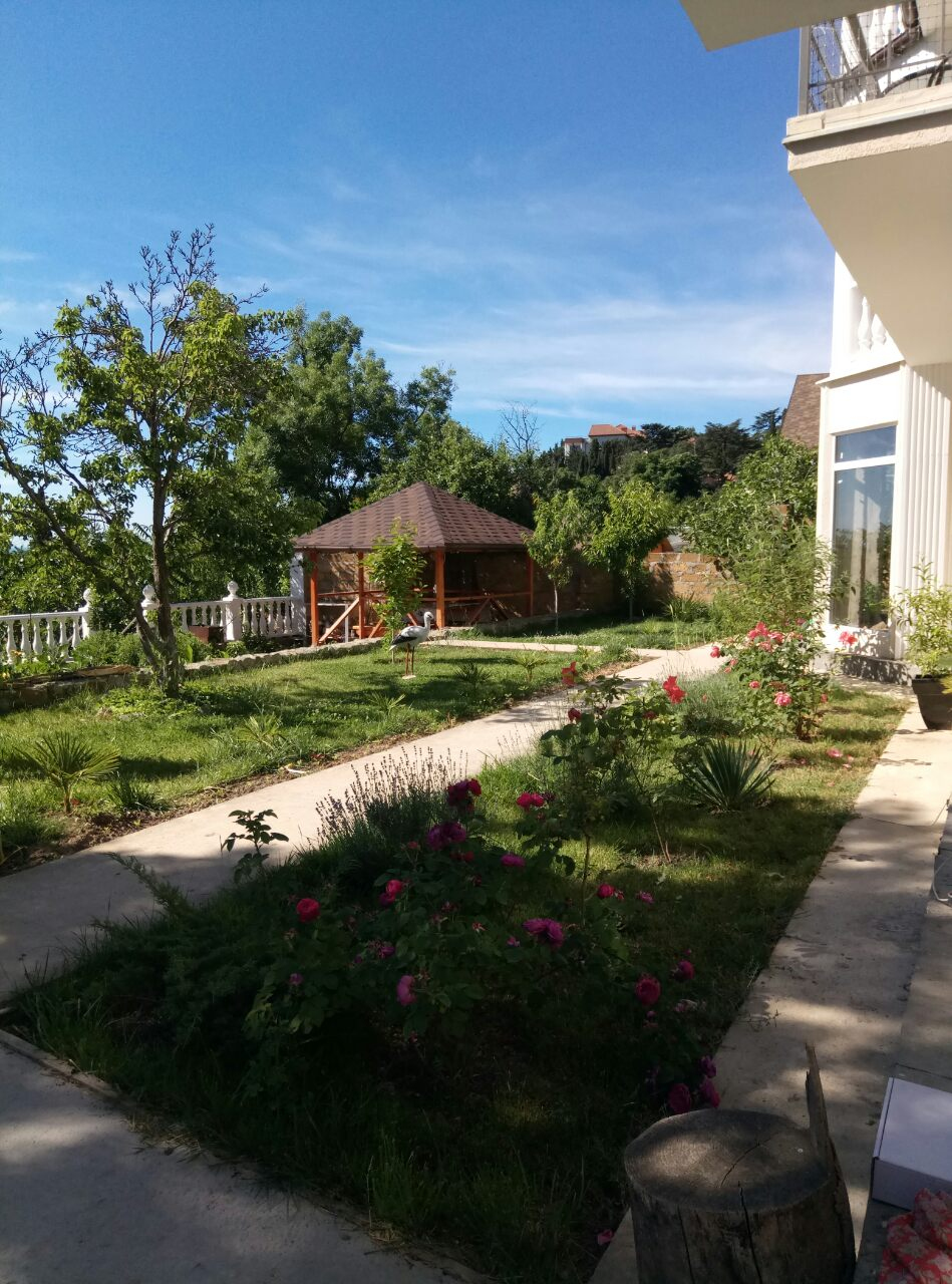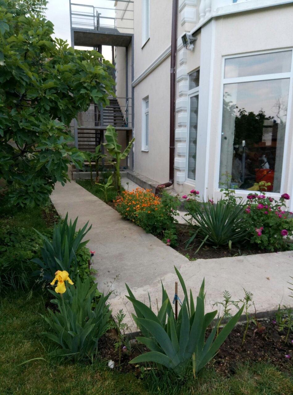 Во дворе много плодовых деревьев и разнообразных кустарников и цветов, что благоприятствует прекрасному настроению и радует глаза.