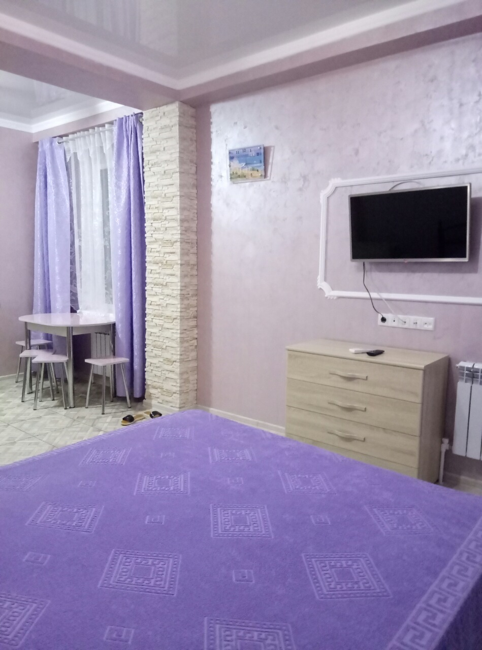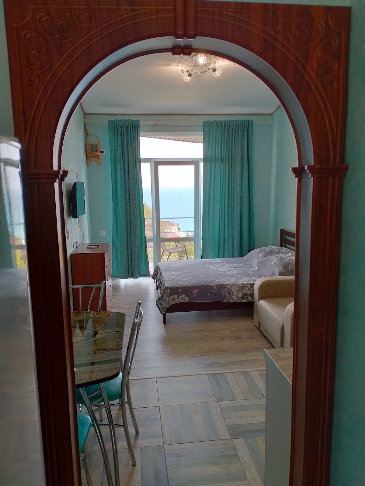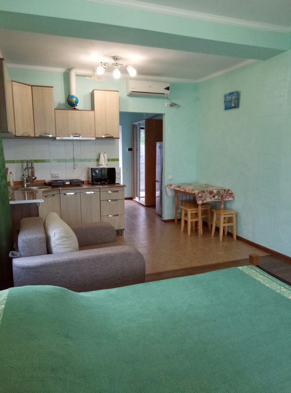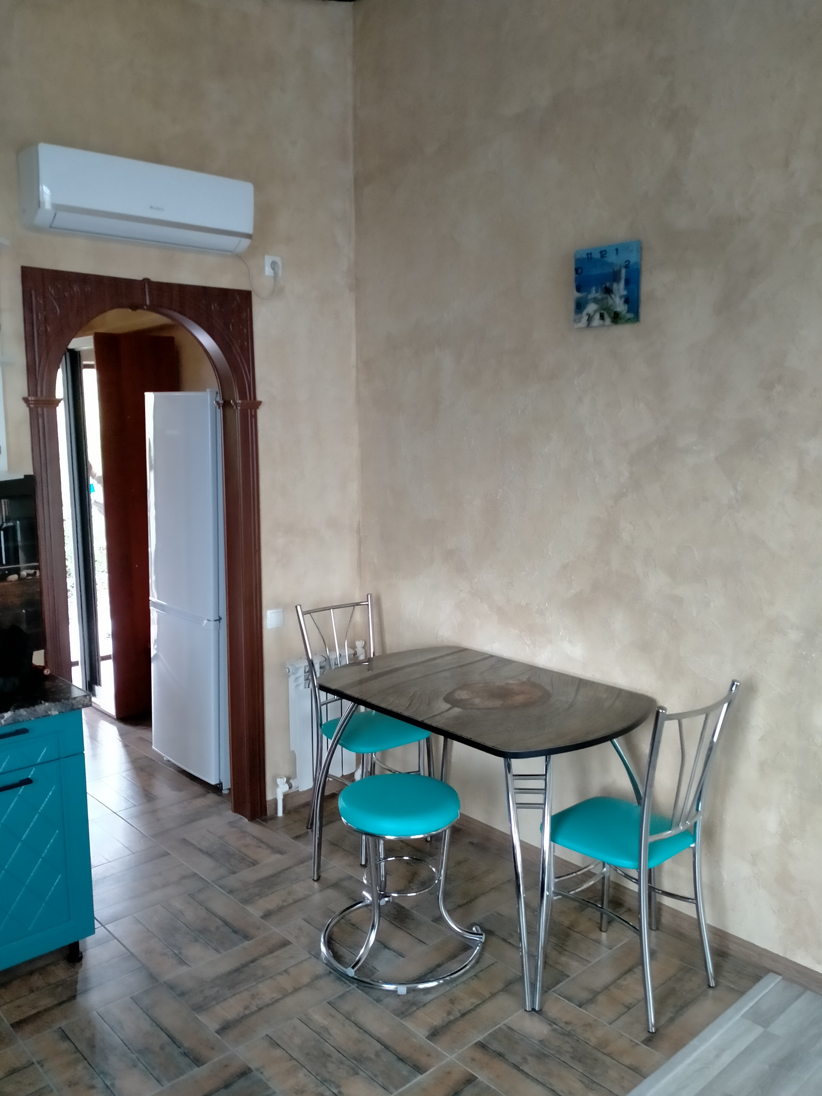 Номера оснащены всем необходимым для отдыха, большая двуспальная кровать и кресло-кровать, есть возможность поставить дополнительное место. ЖК телевизор со множеством каналов не даст заскучать вечером. Кухня в номере имеет казовую плиту, микроволновку, набор посуды, что позволяет готовить изысканные блюда из крымских овощей, фруктов и свежевыловленных морепродуктов.