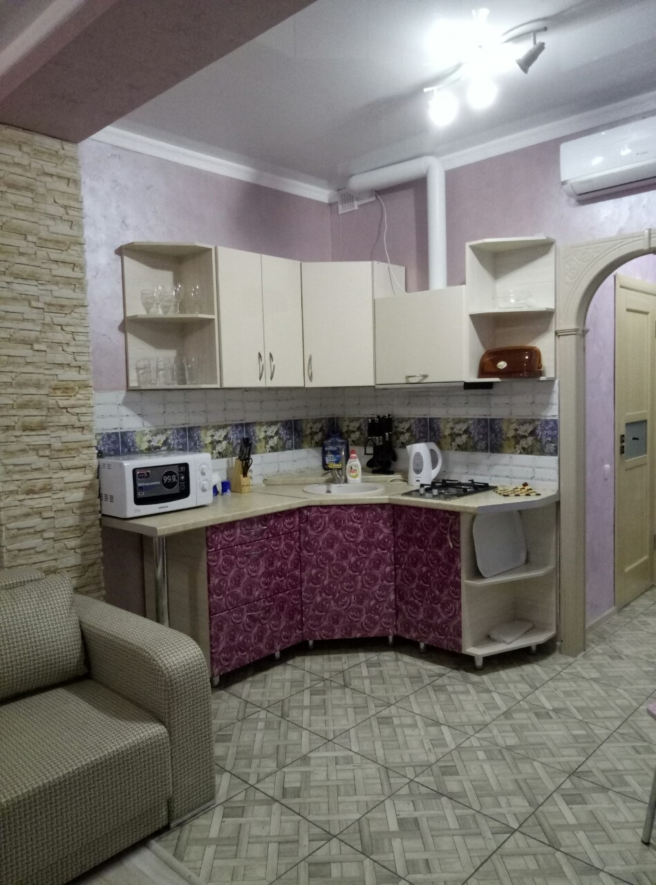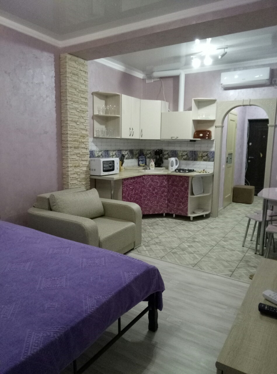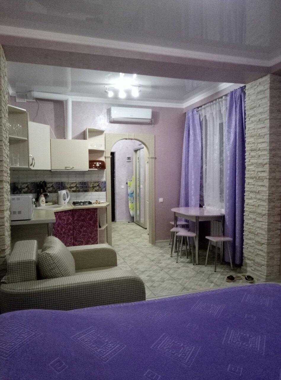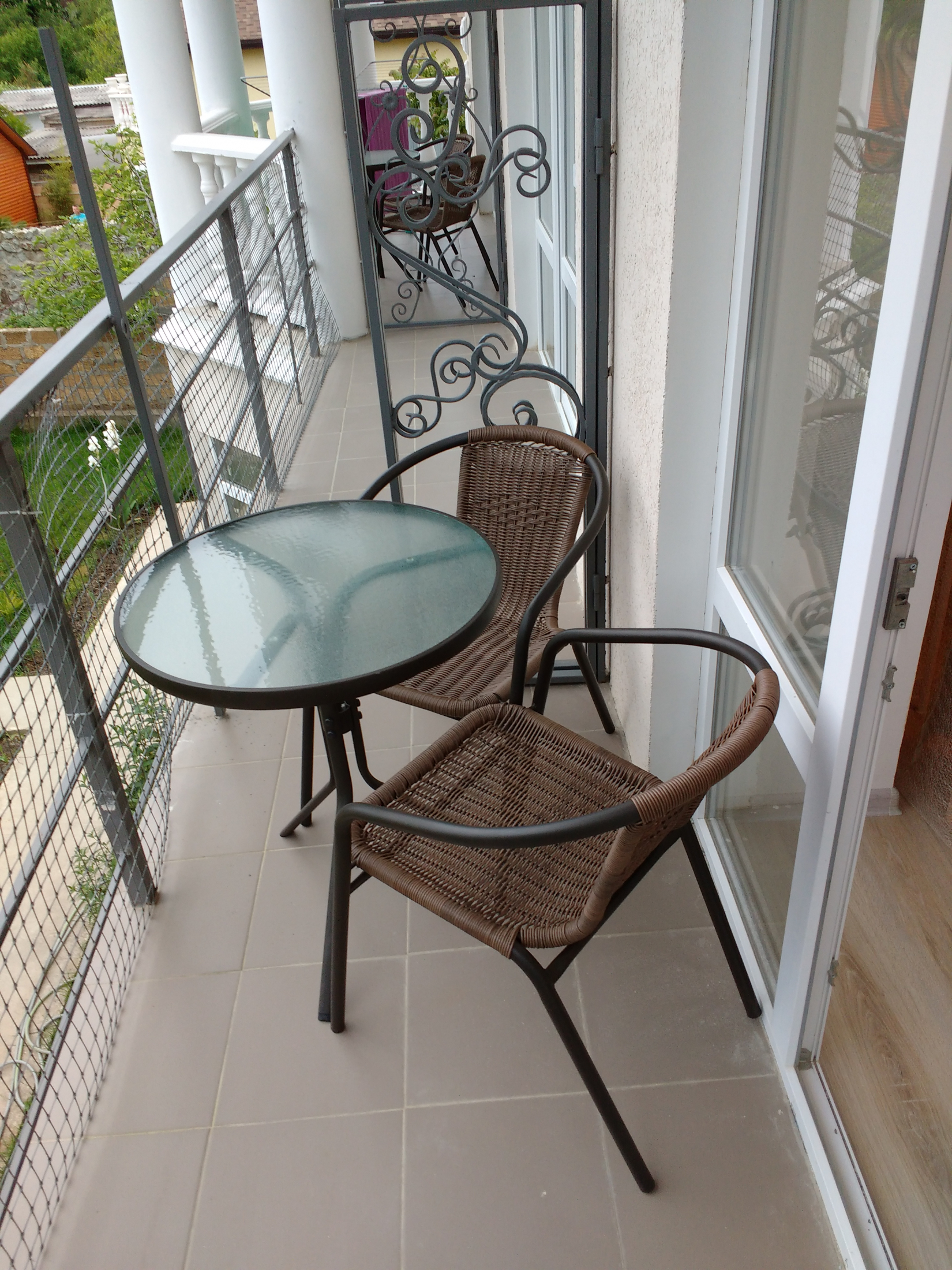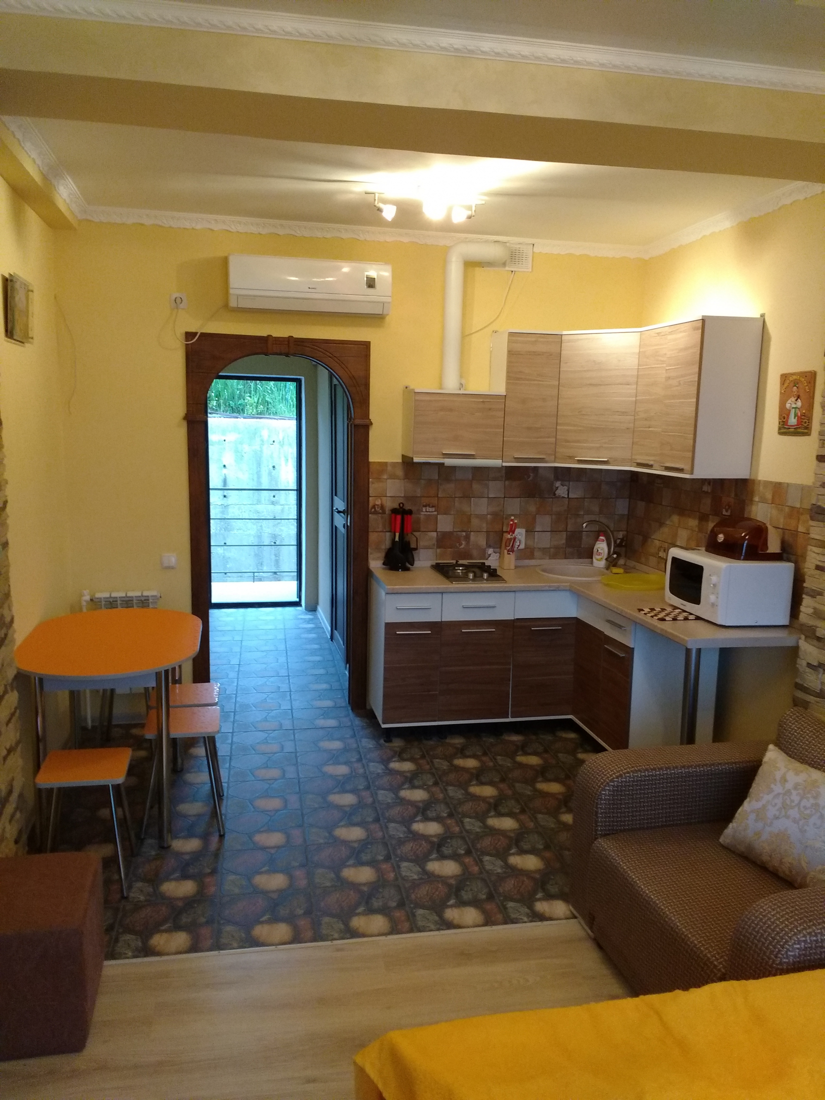 Номера оснащены всем необходимым для отдыха, большая двуспальная кровать и кресло-кровать, есть возможность поставить дополнительное место. ЖК телевизор со множеством каналов не даст заскучать вечером. Кухня в номере имеет казовую плиту, микроволновку, набор посуды, что позволяет готовить изысканные блюда из крымских овощей, фруктов и свежевыловленных морепродуктов.